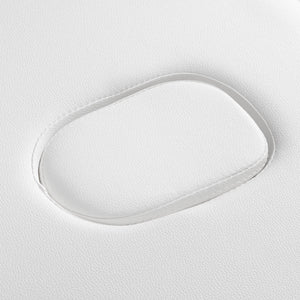 To ensure maximum comfort, the person using the table can rest their head on the ergonomic headrest, which is included in the set. This element is easy to adjust – it allows the angle to be adjusted in two planes, which makes it possible to precisely adjust its position to the user's needs and the nature of the treatment being performed. For supine therapy, the headrest can be removed, using a special hole in the tabletop instead. When not in use, the hole can be covered with the included plug, restoring the surface to an aesthetic and uniform appearance.