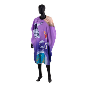 The cape is made of waterproof material that is easy to keep clean and impervious to moisture, protecting clothes from getting wet. The adjustable, comfortable fastening allows for a perfect fit. The dimensions and effortless folding make storage much easier. Additionally, cheerful print with cosmic elements makes the cape not only a practical accessory, but also an interesting attraction that will make a visit to the hairdresser more pleasant.