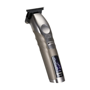 The trimmer with a fashionable, ergonomic shape is made of matte plastic in titanium shades. This ensures the durability of the equipment and affects the ease of cleaning. The stylish, polished panel adds elegance to the device, and the thoughtful location of the slider under the thumb makes the operation of the clipper exceptionally comfortable. In addition, the profiled casing not only emphasises the aesthetics, but also prevent the device from slipping in the hand, which allows for even greater precision of cutting.