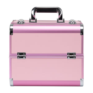 The modern design with smooth pink-finished walls and metallic accents adds a touch of elegance. The handle makes transport easier, which is especially important for mobile stylists. Made from durable, damage-resistant materials, it ensures everyday comfort of use. A sturdy latch closure with a key keeps the contents protected, while the lightweight and durable structure makes the case easy to carry.