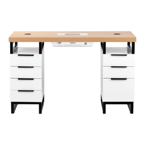 The Momo L02 cosmetic desk with integrated dust absorber is a modern solution combining industrial style with maximum functionality. Stable construction, carefully selected materials and attention to detail make this model not only look great, but above all meet the needs of professionals. Ideal for everyday salon work - it provides convenience, ergonomics and comfort for both stylist and clients.