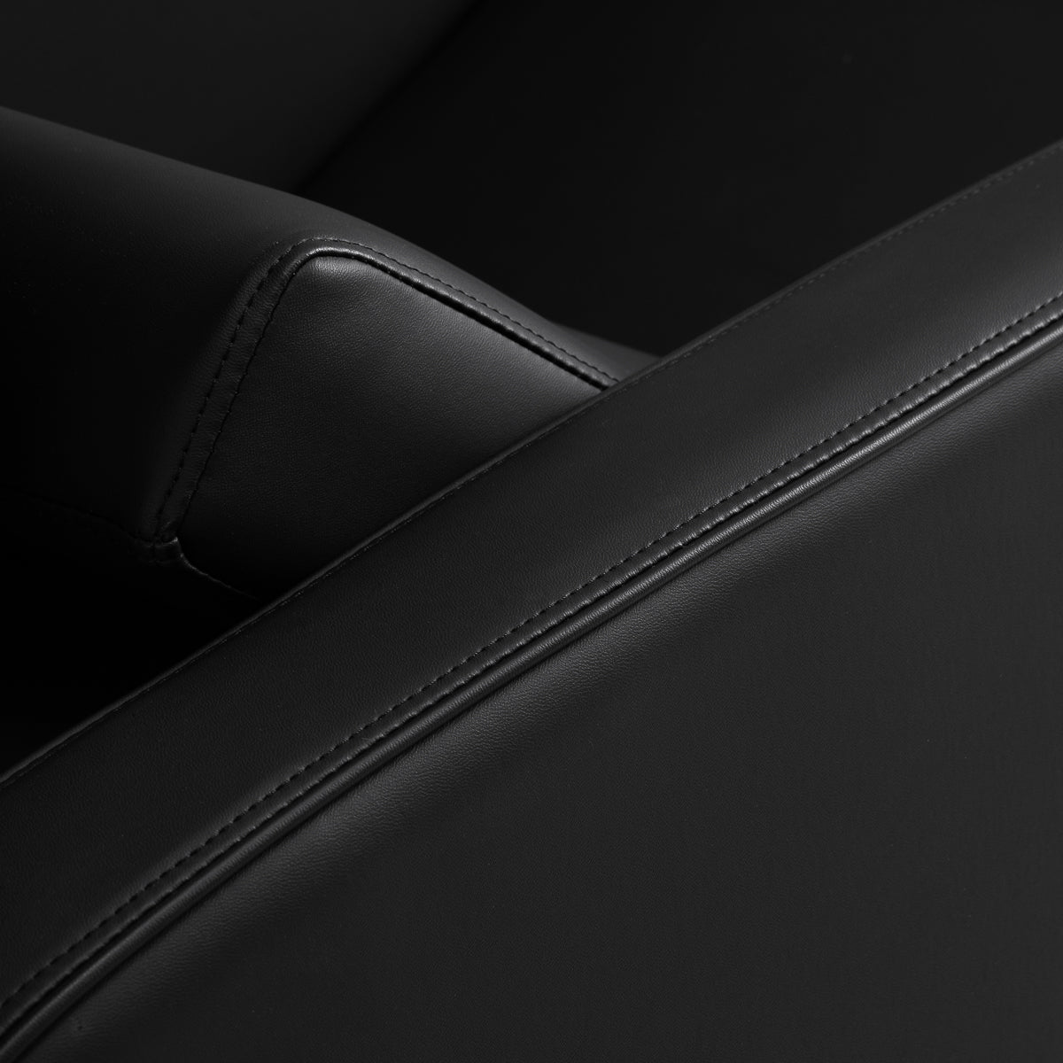 The Gabbiano Emma hairdressing wash unit is designed to ensure comfortable performing of care and coloring treatments and providing the client with a comfortable position during long procedures. The backrest placed at an optimal angle promotes excellent spine support. The appropriately profiled seat filled with durable foam provides high comfort of use, and the upholstered armrests ensure correct positioning of the client's shoulders. The synthetic leather cover in shades of black guarantees long-term durability and ease of cleaning. The slim design of the wash unit fits perfectly into the elegant interiors of hairdressing salons. The set includes complete fittings in shades of black and chrome, including the faucet, showerhead, and dedicated hoses to provide a complete set of work tools.