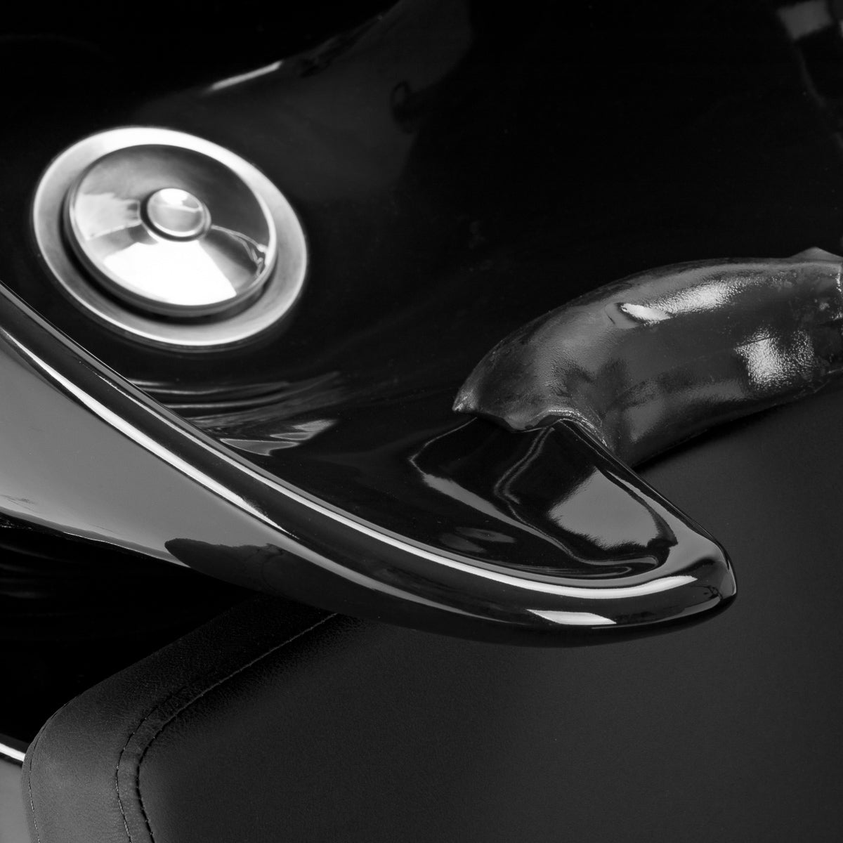 The deep ceramic bowl in shades of black minimises splashing of water and cosmetics during treatments. The adjustable angle of the bowl allows for precise adjustment to the customer's needs. Made of durable material, it is resistant to discolouration, scratches and chemicals, and its smooth surface makes it easy to keep clean. The ergonomically contoured collar provides comfortable head support, and the black plastic cover eliminates the feeling of cold when in contact with the ceramic.