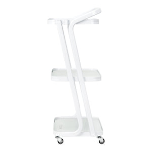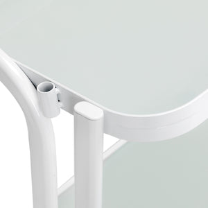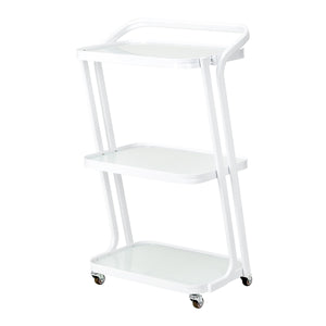 A simple design, a frame made of durable aluminum in the shades of white and glass shelves make the table both aesthetic and easy to keep clean. Four wheels allow easy rearrangement, which significantly facilitates work in the salon, and solid material guarantees long term durability and stability. Elegant finishing and an interestingly inclined frame add to its unique appearance, enhancing the aesthetic of any interior.