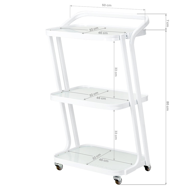 Giovanni H6701 cosmetic table is a practical piece of furniture that will be perfect for any beauty salon and spa. The construction of the furniture makes it lightweight, but at the same time stable, resulting in efficient work. Three glass shelves allow convenient storage and organization of cosmetics, accessories, and equipment necessary during treatments. The minimalistic design adds a professional touch to the interior.