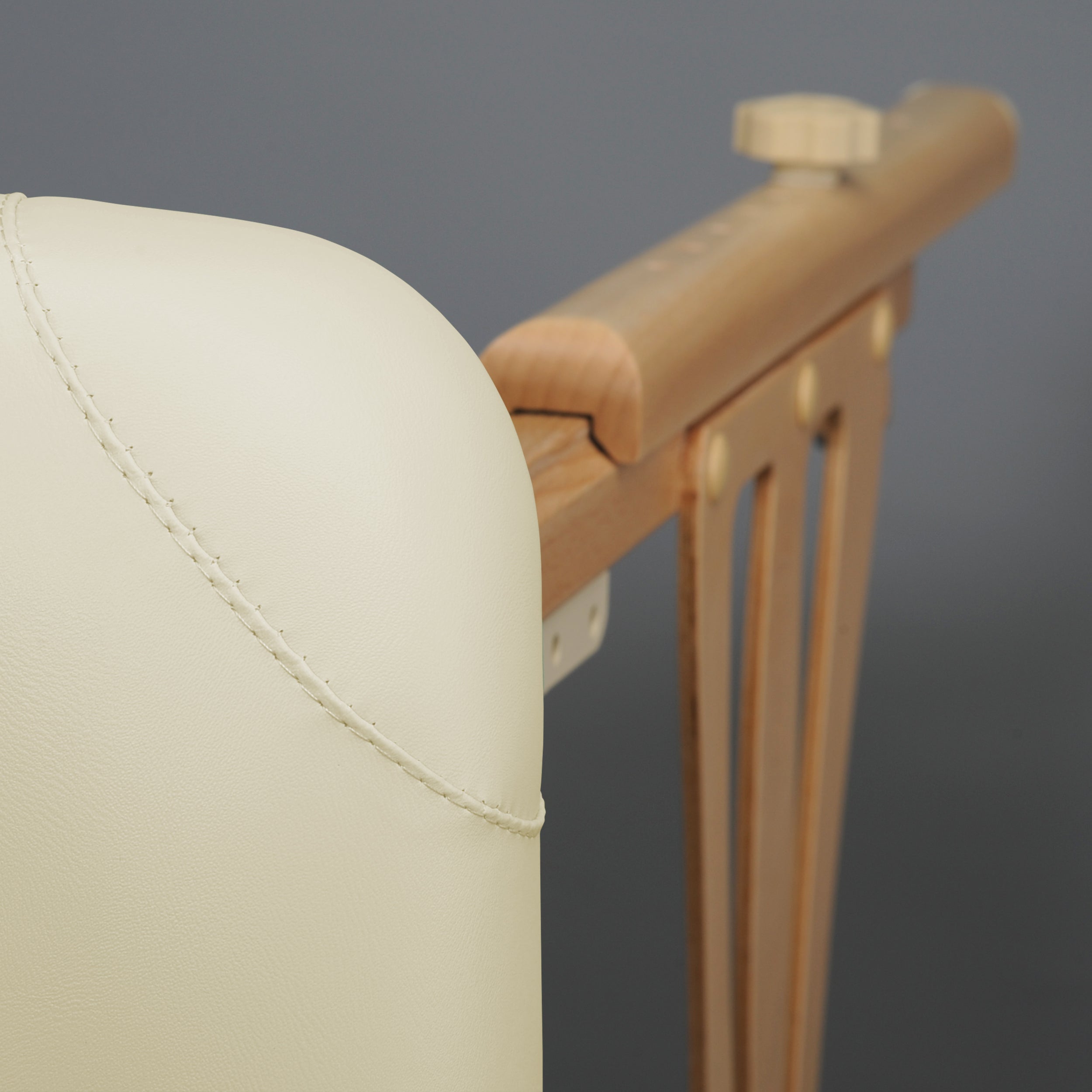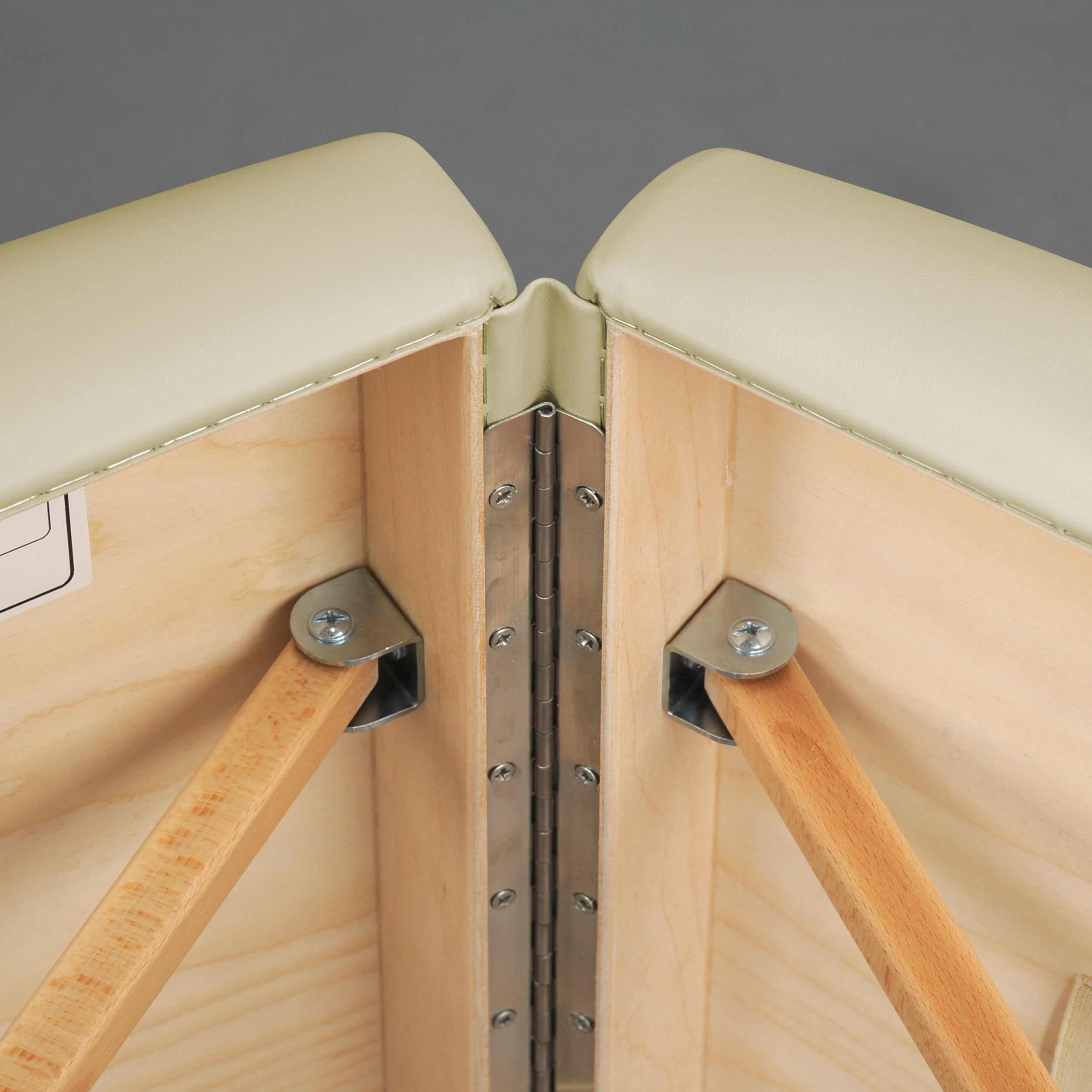 durable stainless steel hinge, protected by a protective upholstery collar