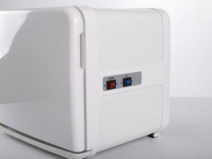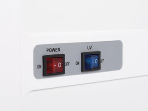 Professional towel and massage stamp warmer, equipped with a UV sterilization lamp and an integrated drip tray. Perfect for massage parlors, beauty salons, and spas. Its small size and minimalist white casing with rounded shapes will fit into any space, even a small one.