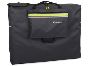 The Habys Standard massage table cover is made of very durable material. It is perfect for transport, protecting the table from damage. It has a spacious pocket, a shoulder strap, and a carrying handle that will allow you to move comfortably with the table.