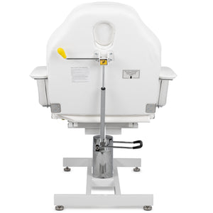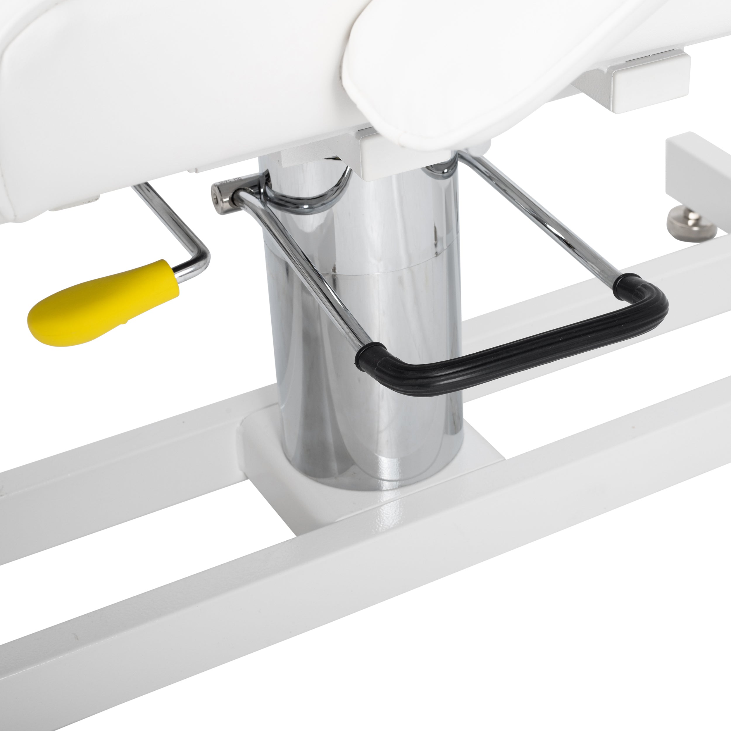 Hydraulic height adjustment: Easily adjust the chair’s height (61–77 cm) with a foot-operated pump to suit the height of the professional and type of treatment.