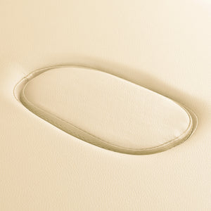 To ensure maximum comfort, the person using the table can rest their head on the ergonomic headrest, which is included in the set. This element is easy to adjust – it allows the angle to be adjusted in two planes, which makes it possible to precisely adjust its position to the user's needs and the nature of the treatment being performed. For supine therapy, the headrest can be removed, using a special hole in the tabletop instead. When not in use, the hole can be covered with the included plug, restoring the surface to an aesthetic and uniform appearance.