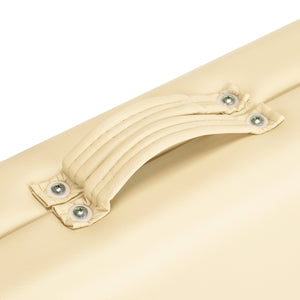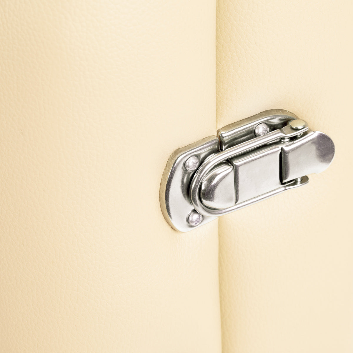 The height of the table can be adjusted to the height and individual needs of the person performing the treatment using a telescopic adjustment from 58 to 80 cm with a locking mechanism. Each of the table's aluminum legs consists of two tubes that can be freely moved relative to each other after being unlocked. The Fast Lock mechanism holds the elements in the selected position once the lock is placed in the appropriate hole. Additionally, the frame structure is stabilized with metal cables, which makes the massage table solid and perfect for a wide range of services.