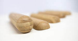 4 stokken met een halfcirkelvormige doorsnede, 3 cm in diameter en 15 cm lang