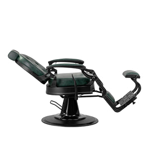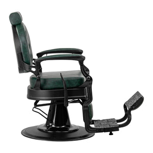De solide basisconstructie zorgt voor stabiliteit en een hoog gebruikscomfort. De zittingvulling van duurzaam, vervormingsbestendig schuim en de bekleding van aangenaam aanvoelend synthetisch leer met een halfmatte afwerking zorgen voor de duurzaamheid van het meubel en het comfortabele gebruik ervan voor een lange tijd. Ze maken de apparatuur ook bestand tegen vocht, duurzaam en gemakkelijk schoon te maken. De bekleding in groene tinten met stiksels en decoratieve knopen geeft het een uniek karakter. De stoel met een karakteristiek design, verwijzend naar de vintage stijl, past perfect in de sfeer van kapperszaken en benadrukt hun unieke sfeer.