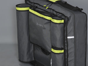 De City massagetafelhoes van Habys is gemaakt van zeer duurzaam materiaal. Het is perfect voor transport en beschermt de tafel tegen beschadiging. Het heeft 4 ruime zakken, een schouderband, een handvat en reflectoren. Hierdoor kunt u de benodigde massageaccessoires erin kwijt en gemakkelijk de klant bereiken.