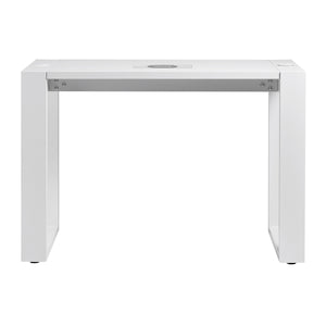 The G031 minimalist cosmetic desk is distinguished by its simple, geometric form and open leg design, which gives it a light and modern feel. It is perfect for beauty salons, providing a comfortable working space. The desk has special grommets in the tabletop for running cables from essential equipment, which makes it easy to keep the workstation tidy and aesthetically pleasing.