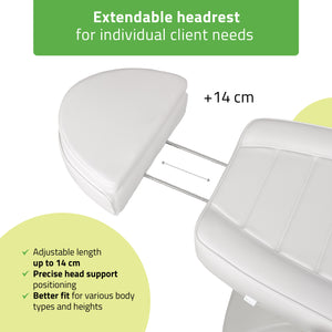 Uitschuifbare hoofdsteun: Verstelbaar tot 14 cm om aan de individuele behoeften van de klant te voldoen.