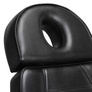 De elektrische cosmetische stoel Sillon Lux 273B is uitgerust met 3 actuatoren die worden bediend met een afstandsbediening op de kabel, waardoor deze soepel kan worden aangepast in drie vlakken - hij heeft hoogteverstelling en hellingshoeken van de rugleuning en voetsteun. De zithoogte is verstelbaar van 65 cm tot 84 cm, en in volledig uitgevouwen toestand bereikt de stoel een lengte van meer dan 2 meter. De apparatuur kan gemakkelijk in een liggende positie worden geplaatst, wat in combinatie met het gat in de hoofdsteun dat verborgen is onder een dop, de functionaliteit aanzienlijk verhoogt bij gezichts- en lichaamsbehandelingen.