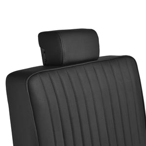 Sturdy base construction ensures stability and high comfort. The seat is filled with deformation-resistant foam and upholstered with soft, matt synthetic leather, combining durability with comfort. The materials used for the finish are moisture-resistant, durable and easy to clean, making the chair perfect for everyday use. Stylish stitching and upholstery in shades of black give it a unique character, blending perfectly with the décor of modern barbershops.