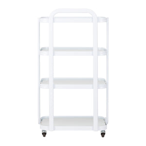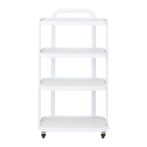 De eenvoudige constructie, het frame van duurzaam aluminium in witte tinten en de glazen planken maken de tafel zowel esthetisch als gemakkelijk schoon te maken. Vier wielen maken het mogelijk om hem vrij te verplaatsen, wat het werk in de salon aanzienlijk vergemakkelijkt, en de solide materialen garanderen een lange levensduur en stabiliteit. De elegante afwerking geeft hem een unieke uitstraling, waardoor de esthetiek van elk interieur wordt verhoogd.
