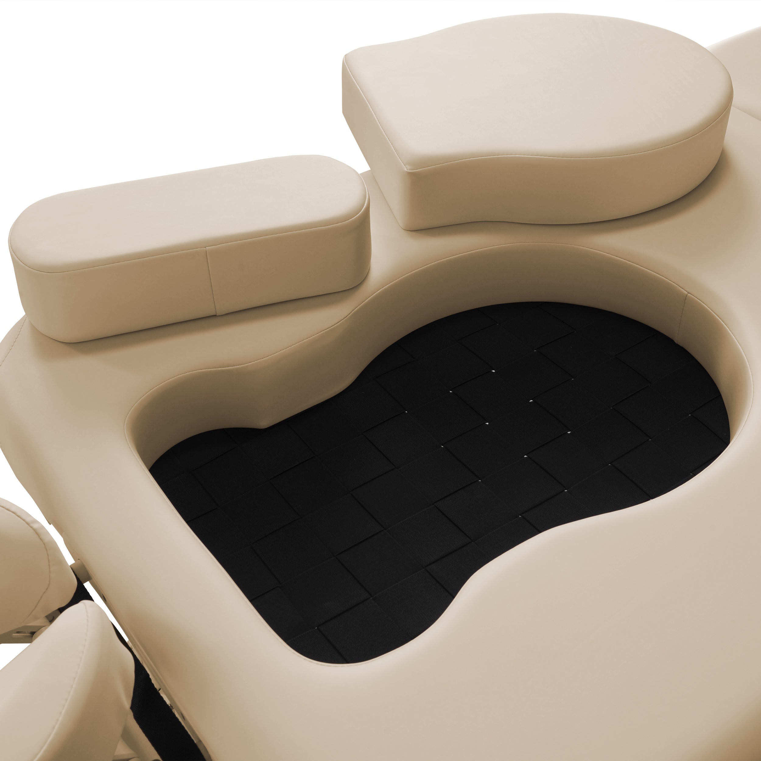 tweedelige, ergonomische uitsparing in de tafel voor de buik en borsten