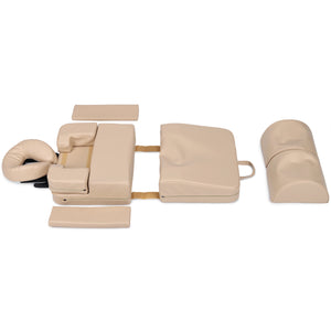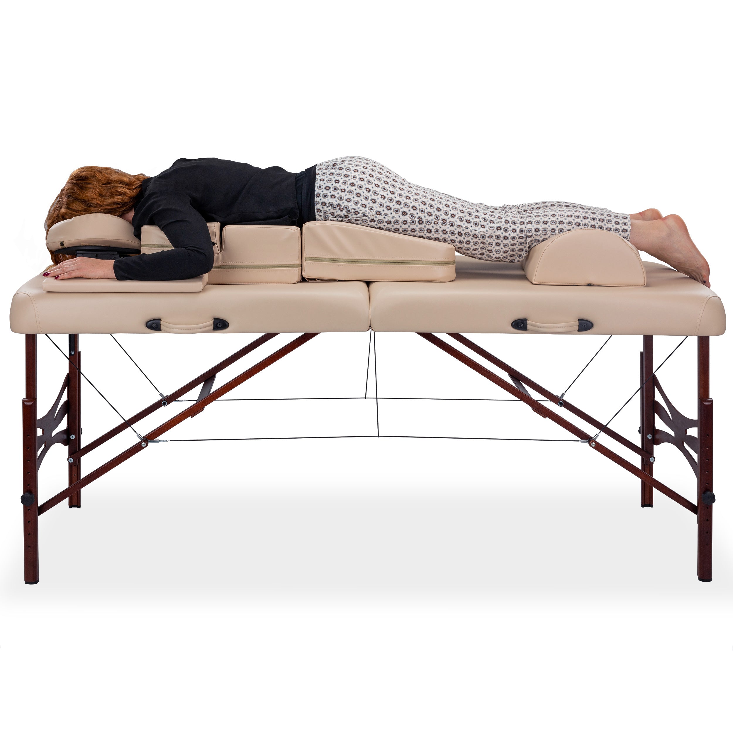 Een set massagekussens ontworpen voor zwangerschapsmassage, waardoor de positionering van de vrouw tijdens de massage wordt verbeterd. De kussens bieden volledig comfort, zowel bij het liggen op de zij als op de buik, waardoor de effectiviteit van de massage wordt verbeterd en de uitvoering ervan wordt vergemakkelijkt. De kussens zijn gemaakt van schuim met optimale elasticiteit en weerstand tegen vervorming.