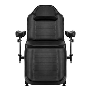 De stoel is uitgerust met een hydraulische actuator die een soepele hoogteverstelling van 60 tot 73 cm mogelijk maakt. Zowel de rugleuning als de voetsteun hebben een handmatige hoekverstelling, waardoor een aangepaste positionering mogelijk is die past bij het type procedure dat wordt uitgevoerd. De beweegbare, verzonken armleuningen zijn eenvoudig te verwijderen en aan te passen. Ze maken hoek-, hoogte- en kantelverstelling mogelijk, wat zorgt voor comfortabele, stabiele ondersteuning en nog meer werkvrijheid voor de tattoo-artiest. Al deze functies verhogen het comfort van de klant en vergemakkelijken nauwkeurig tatoeëren.