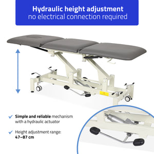 Ultima H3 therapietafel, hydraulisch verstelbaar, wielen, PVC, grijs