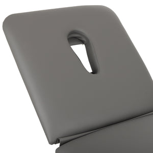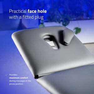 Gezichtsgat: een speciaal gevormd gat in de verstelbare hoofdsteun zorgt voor een comfortabele gezichtspositie bij het liggen op de buik, zodat de patiënt een ergonomische positie kan aannemen zonder het hoofd te hoeven draaien.