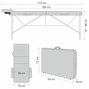 Bianca is een opklapbare massagebank met een houten constructie en complete uitrusting, inclusief een hoes en extra accessoires. Het model heeft een driedelig blad met comfortabel 5 cm schuim, bestaande uit twee lagen van verschillende hardheid. De eerste is zacht met een dikte van 4 cm en de tweede is iets harder met een dikte van 1 cm. Dit maakt de tafel niet alleen uitzonderlijk comfortabel voor de patiënt, maar ook comfortabel voor de therapeut.