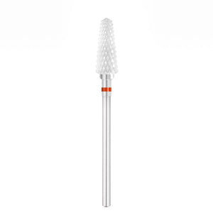 Keramisk afrundet keglefræser er lavet af meget fint skårne kanter, hvilket muliggør delikat og præcist arbejde. Bladene efterlader en perfekt glat overflade. Fræseren bruges oftest til at fjerne hybridlak.