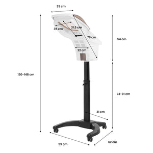 Det hvide plasthus gør apparatet holdbart og let at holde rent. Den åbne kuppel forbedrer rengøringen af produktet betydeligt. Stativet med enkel, manuel justering i intervallet 18 cm er udstyret med en base med praktiske hjul, som gør det muligt at flytte apparatet nemt til enhver tid.