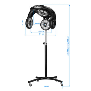 Gabbiano GL-505S professionel stående infrazone er et essentielt apparat, når der udføres behandlinger, der involverer høj temperatur, såsom farvning, blegning, pleje eller tørring, samt permanent styling. Apparatet reducerer behandlingens varighed betydeligt, hvilket gør det muligt at betjene flere kunder, samtidig med at den høje kvalitet af de leverede ydelser i salonen opretholdes.