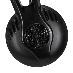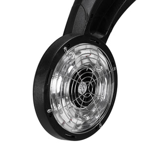 Det futuristiske kabinet, lavet af holdbar plast i sorte nuancer, giver apparatet et moderne og unikt look, hvilket gør det velegnet til de fleste interiører. Det er også holdbart og let at rengøre. Stabilitet sikres af den firebenede base, udstyret med hjul, hvilket sikrer mobilitet. Monteringsmuligheden og den justerbare stativarm garanterer behagelig betjening og tilpasning til individuelle behov.