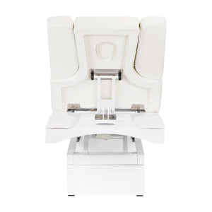 ny skønhedssalon. et absolut hit blandt briksene. elektrisk højdejustering i et meget bredt område - fra 62 til 90 cm. ryglænet kan også justeres med fjernbetjening, fra vandret til næsten lodret (stiger til 80 grader). mulighed for sideudvidelse eller komplet demontering af ryglænets sidedele. i den nederste del, under ryglænet, er der en skuffe til praktisk tilbehør. bredt møbel (76 cm), med en tyk, opvarmet og meget behagelig madras. briksen er meget stabil. den er betrukket med øko-læder af høj kvalitet.