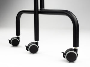 Skærm lavet af stål belagt med holdbar sort pulverlak. Specielle hjul med bremser muliggør bekvem bevægelse og stabilisering, selv på glatte overflader. Skærmenes attraktive farver betyder, at skærmene ud over funktionalitet understreger interiørets moderne karakter. Den sorte matte farve på skærmens konstruktion korresponderer perfekt med det moderne design af Agila stationære massageborde.