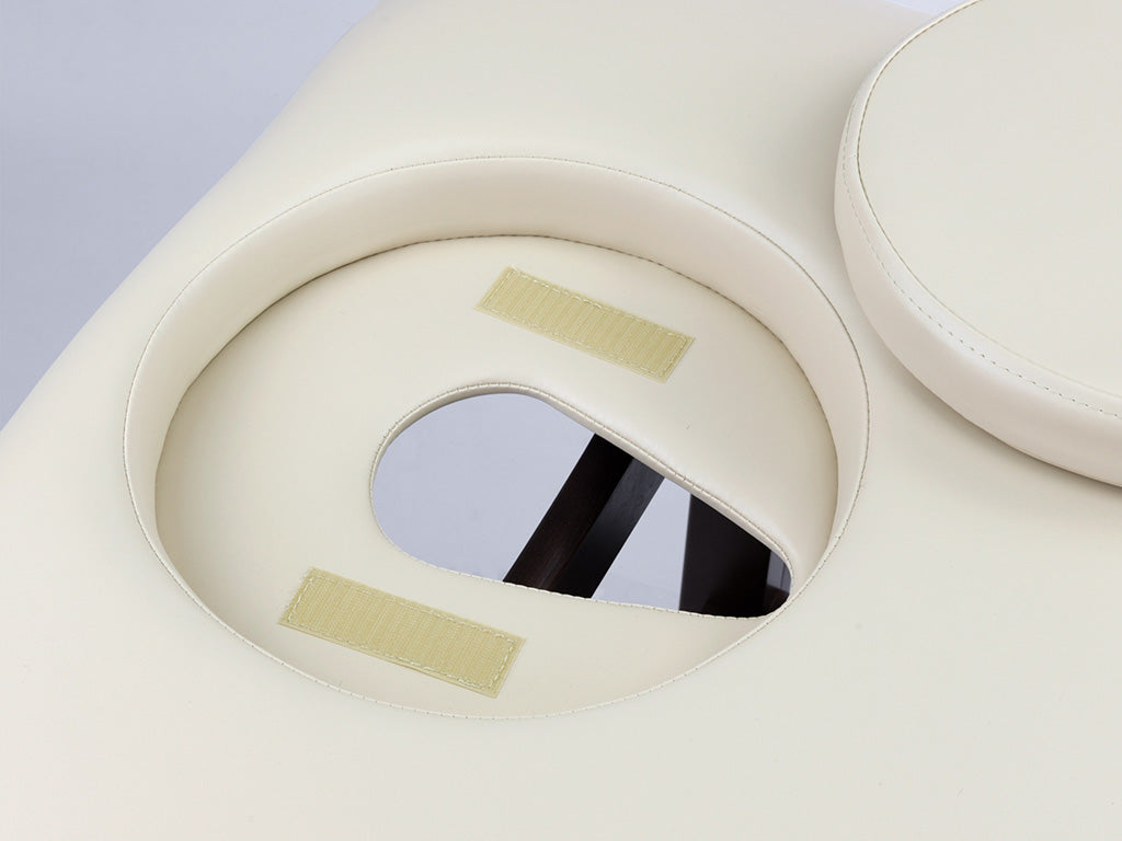 En speciel skumsammensætning sikrer patientens fulde komfort under proceduren, hvilket giver dem mulighed for at slappe helt af. Den justerbare nakkestøtte muliggør en bred vifte af anvendelser for briksen. Naturligt bøgetræ og en solid bordplade med afrundede hjørner giver briksen et moderne og imponerende udseende.