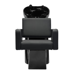 De diepe keramische kom in zwarte tinten minimaliseert het spatten van water en cosmetica tijdens behandelingen. De verstelbare komhoek maakt een nauwkeurige aanpassing aan de behoeften van de klant mogelijk. Gemaakt van duurzaam materiaal, is het bestand tegen verkleuring, krassen en chemicaliën, en het gladde oppervlak maakt het gemakkelijk schoon te houden. De ergonomisch geprofileerde kraag biedt comfortabele hoofdsteun, terwijl de zwarte plastic afdekking het gevoel van kou elimineert bij aanraking met het keramiek.