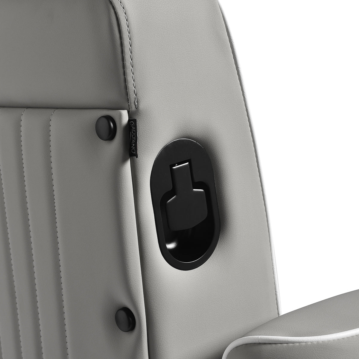 The Gabbiano Levi barber chair combines style with functionality. Equipped with a solid hydraulic lift, adjustable backrest, footrest, and extendable headrest, it allows for a customizable positioning to suit the type of treatment being performed. This ensures maximum comfort for both the client and the person performing the service. Carefully crafted details, vertical upholstery stitching and elegant finishes make the chair a eye-catching addition to any barbershop.