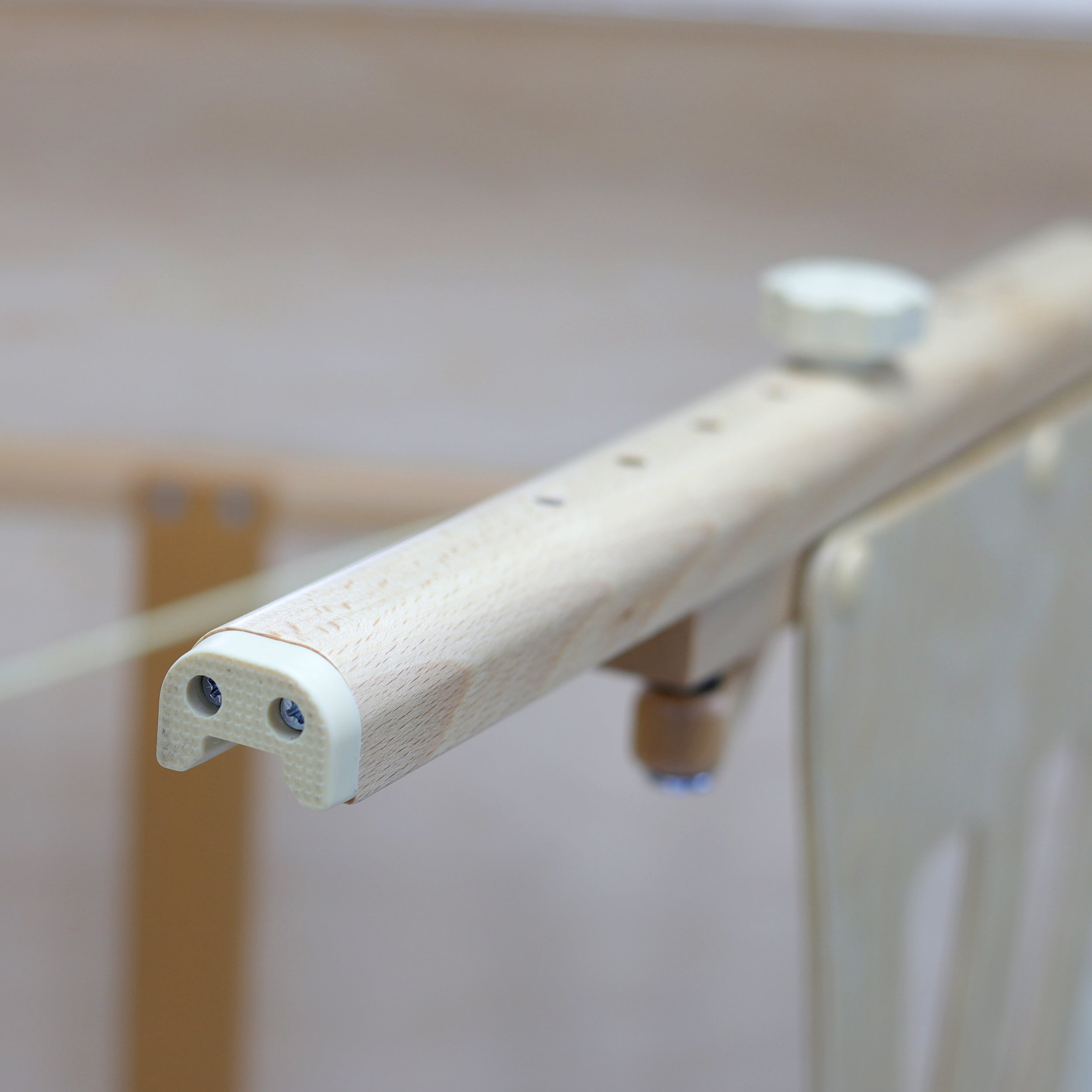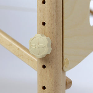 comfortabele rubberen verstelknop met het Habys-logo, met een extra laag vilt ter bescherming van houten elementen