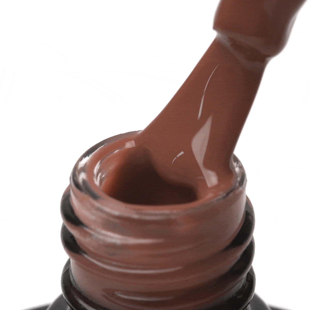 5. Verdeel de hybride lak in de gekozen kleur over de uitgeharde basis en hard deze 30 seconden uit onder een LED-lamp of 2 minuten onder een UV-lamp. De handeling kan worden herhaald om een intensere kleur te verkrijgen.