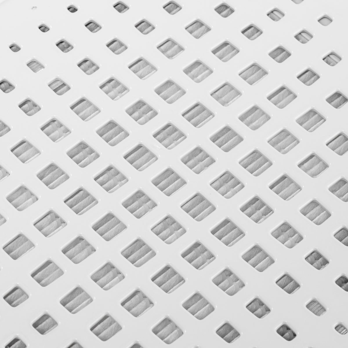 Het model maakt gebruik van een HEPA-cassettefilter dat effectief zelfs de kleinste stofdeeltjes vasthoudt, waardoor schone lucht op de werkplek wordt gegarandeerd. De gefilterde lucht wordt afgevoerd via nauwkeurig geplaatste ventilatieopeningen, wat de efficiëntie van het apparaat ondersteunt. Het grote absorptieoppervlak maakt het mogelijk om beide handen tegelijkertijd boven het apparaat te houden, en dankzij de hoge efficiëntie van de afzuiger worden verontreinigingen effectief direct naar het filter verwijderd. Om de veiligheid en hygiëne verder te verhogen, is het apparaat uitgerust met katoenfilters die het hoofdfiltratiesysteem ondersteunen en zorgen voor een uitzonderlijke reinheid van de werkplek.